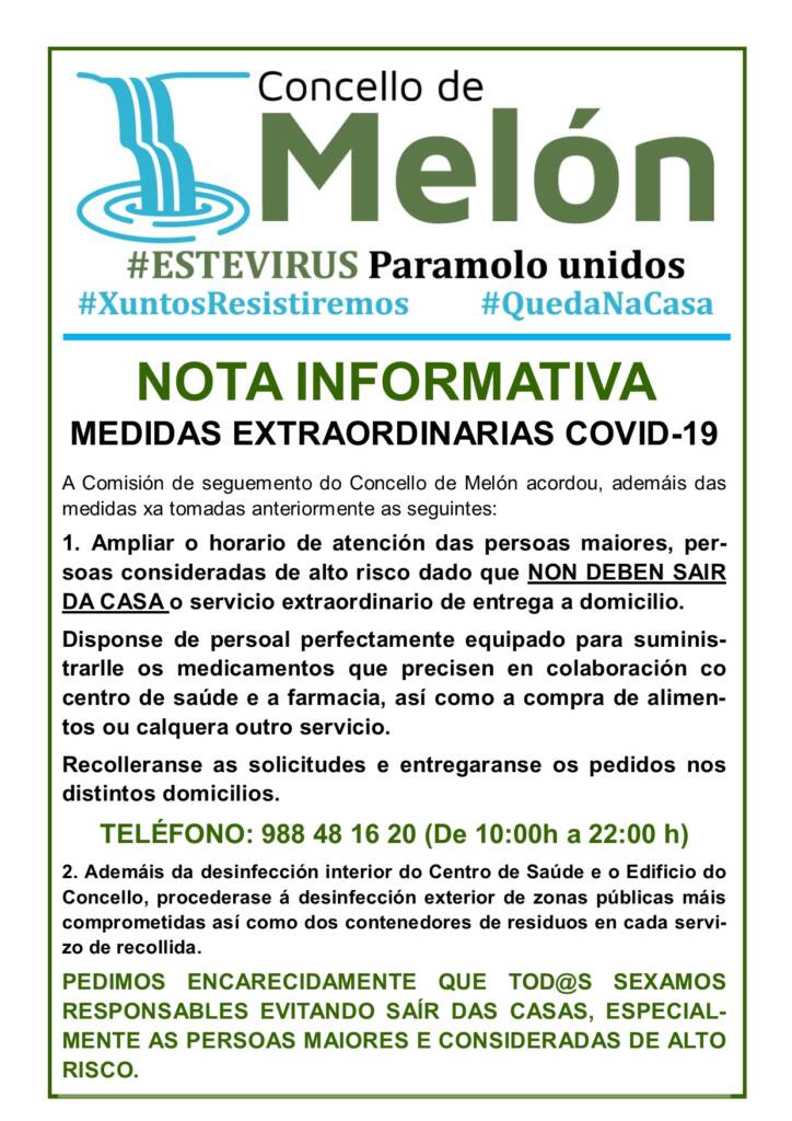 A Comisión de seguemento do Concello de Melón acordou, ademáis das medidas xa tomadas anteriormente as seguintes: